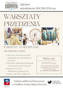 Zapraszamy na warsztaty przędzenia, które w Szczecinie, dla mieszkańców Szczecina poprowadzi Aleksandra Sobieszczuk z Pracowni Rzemiosł Dawnych